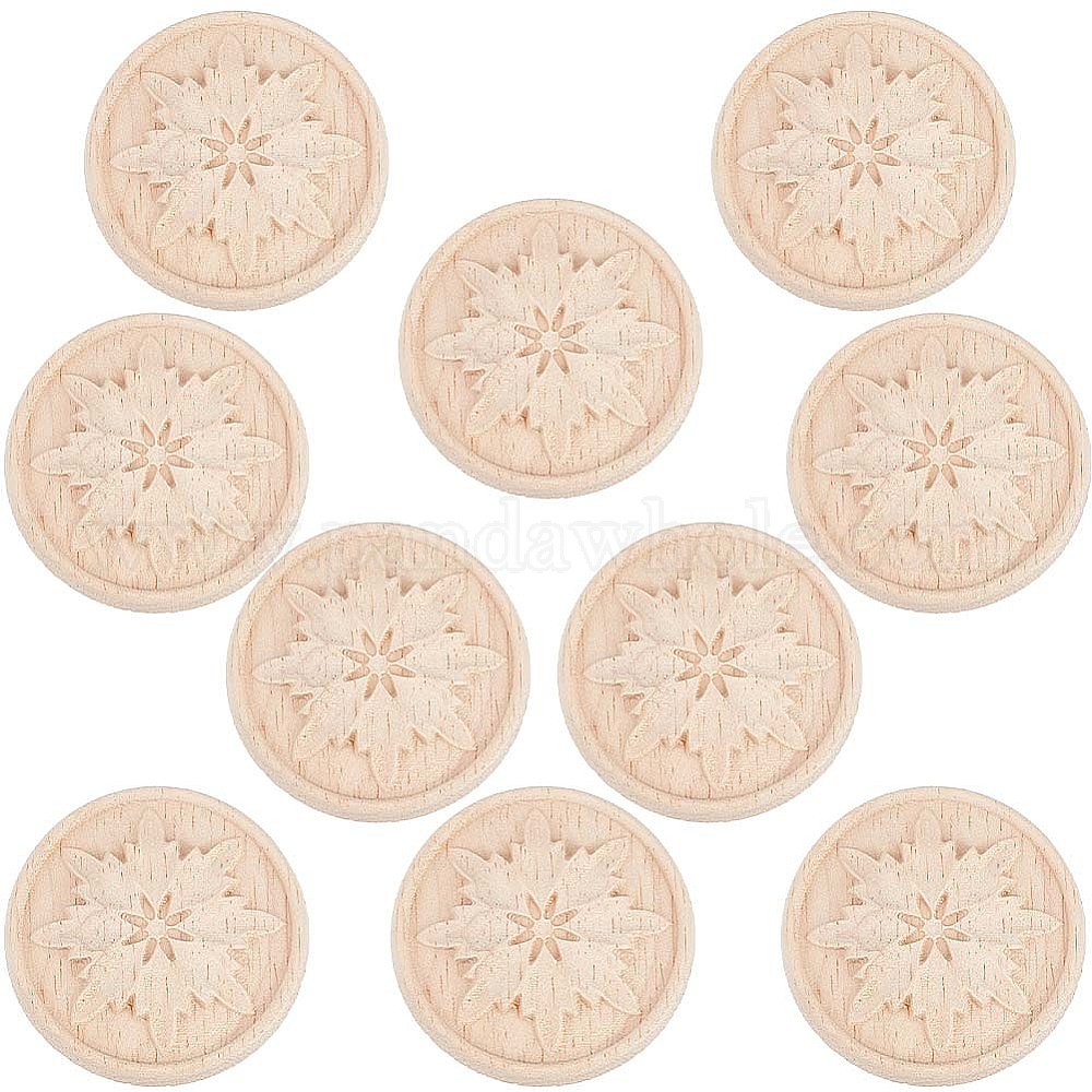 • Плоский Круглый Резьба по дереву накладная аппликация поделки, неокрашенная накладка мебель украшения дома, цветочным узором, плоско-круглые, 48x7.5 мм