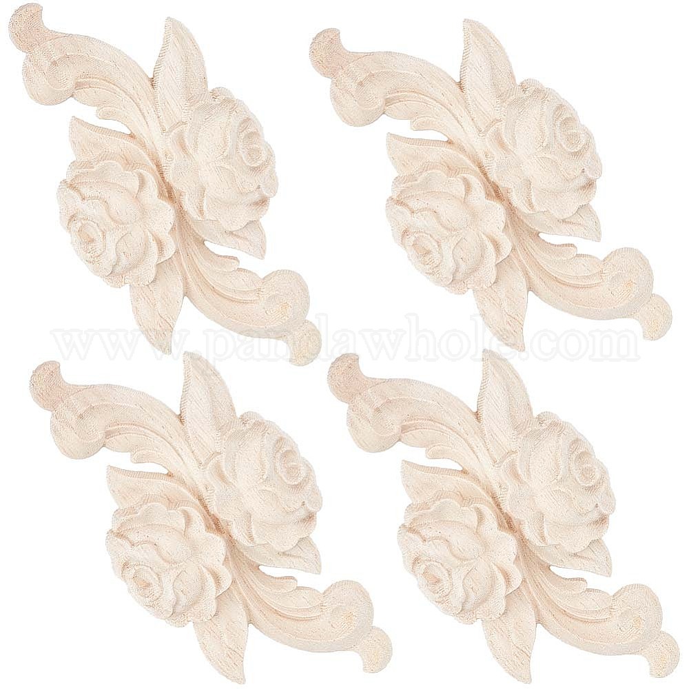 Аппликации с резьбой по дереву, деревянные накладки, для украшения мебели шкафа двери кровати шкафа, цветочным узором (02GDZA)