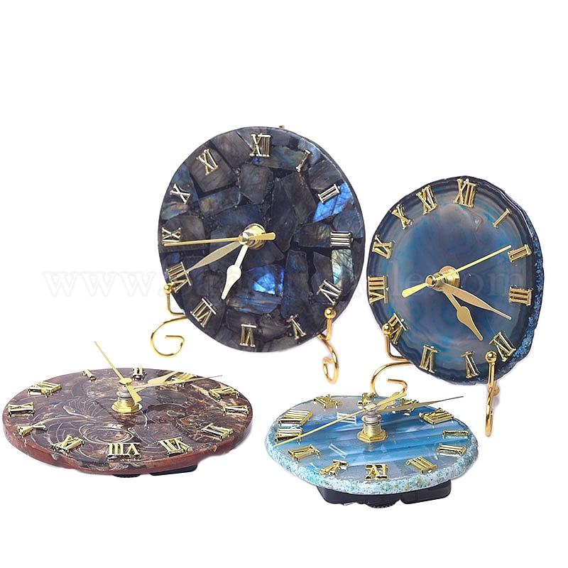 Украшения для часов из смолы, со срезом агата внутри и металлическим держателем, украшение для стола дома по фен-шуй (02NRFX)