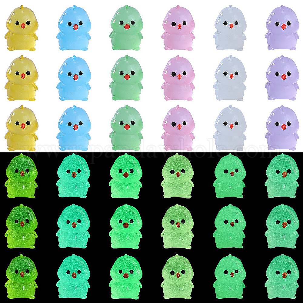 Декорации из светящейся смолы для цыплят: ширина около 15 мм., 15 мм длиной, 20 мм высотой, 6 цветов, 6 шт / цвет, 36шт;