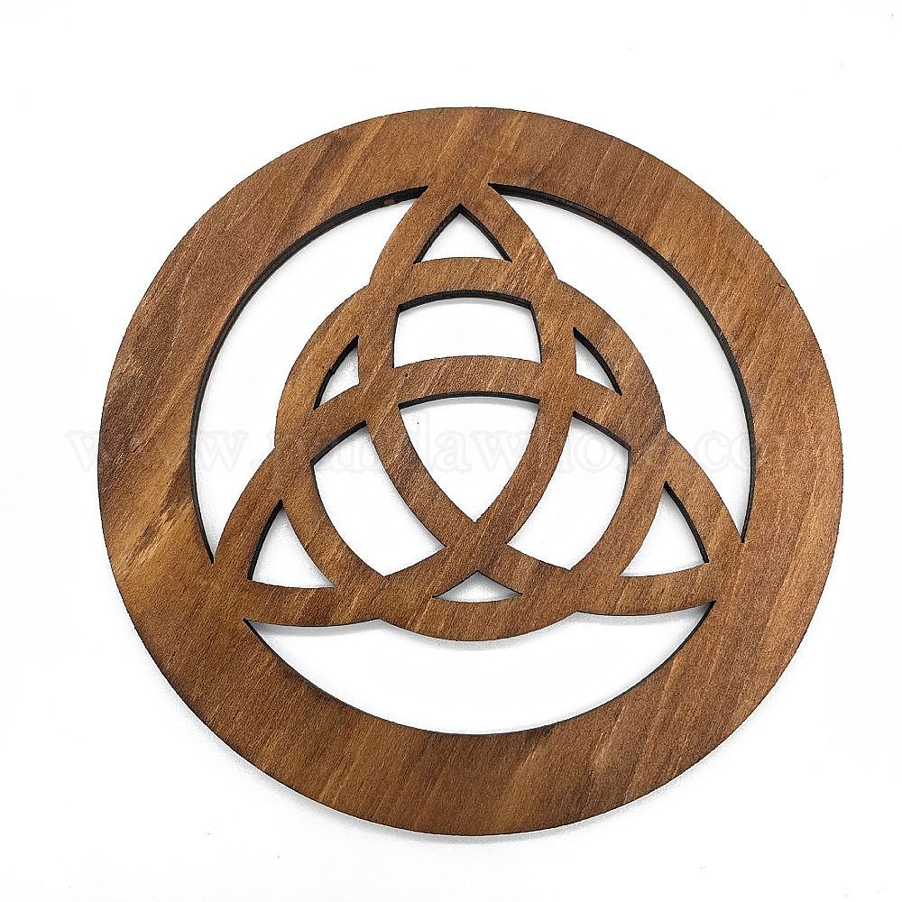 • Цвет Древесины Деревянные ритуальные украшения алтаря Викки, для эстетического декора комнаты, украшения дома, плоский круглый с узлом, деревесиные, 119 мм