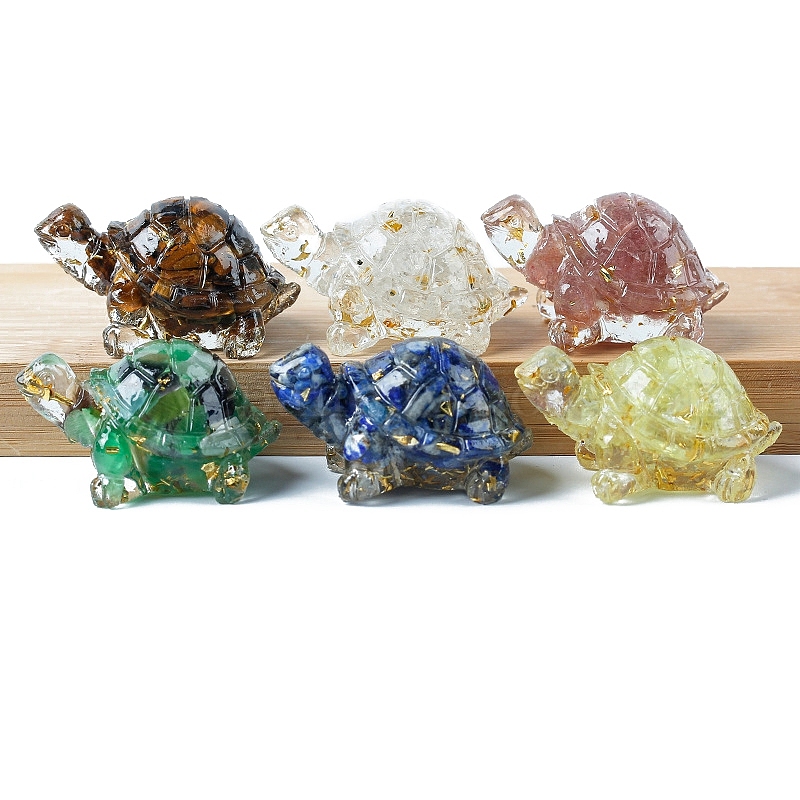 Украшение дисплея черепахи из смолы, с кусочками натуральных и синтетических драгоценных камней внутри статуй для украшения домашнего офиса