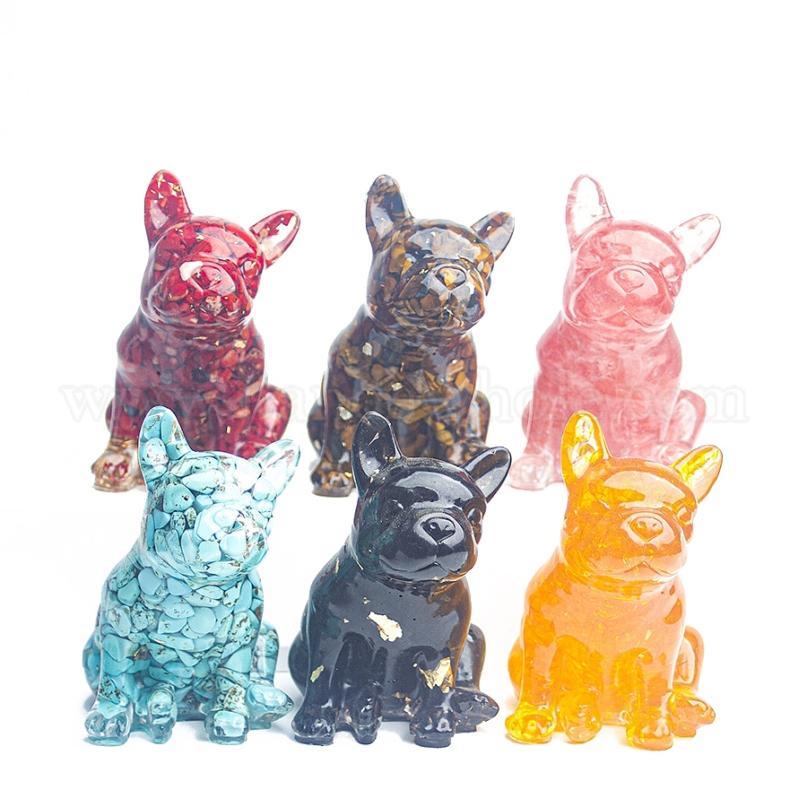 • Обсидиан Украшение для бульдога из смолы, с натуральными кусочками обсидиана внутри статуй для украшения домашнего офиса, 45x50x75 мм