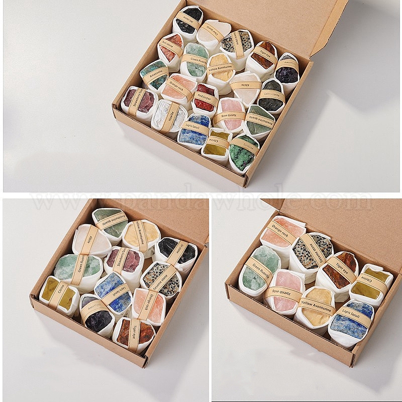 Необработанные необработанные самородки, коллекции смешанных натуральных драгоценных камней, для преподавания наук о Земле, с деревянной коробкой