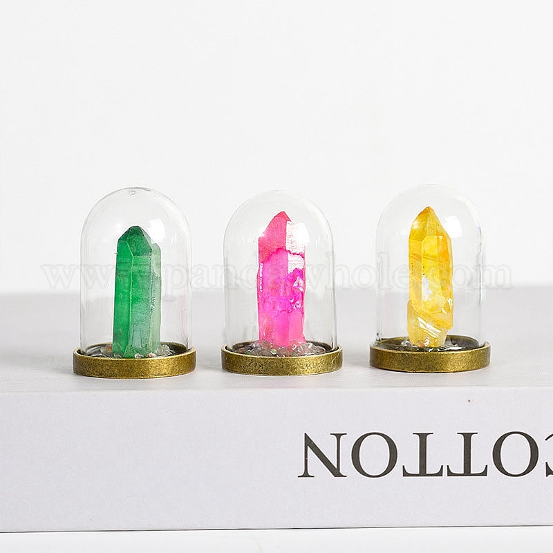 Колпаки из необработанных натуральных драгоценных камней, украшение дисплея хрустальным камнем, со стеклянной крышкой