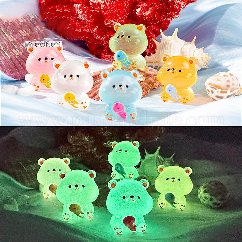 • Бледно-Зеленый Фигурки медведей из светящейся смолы, украшения, светится в темноте, Микропейзаж, украшения для рабочего стола в машине, дома, бледно-зеленый, 31x28 мм
