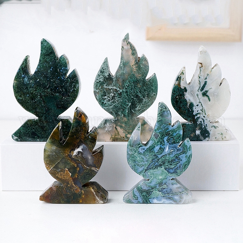 Резные фигурки в форме пламени из натурального мохового агата, для украшения рабочего стола домашнего офиса