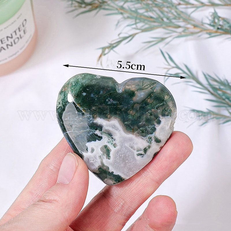 • Мосс Агат Фигурки целебного сердца из натурального мохового агата, Подарок для медитации на баланс энергии Рейки, 55 мм