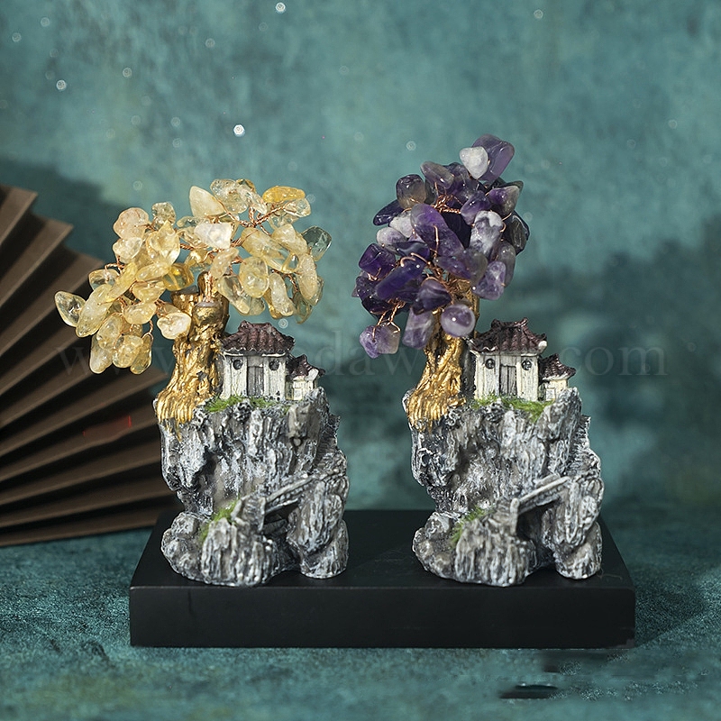 Украшения из дерева с фишками из натуральных драгоценных камней, с основой из смолы и орнаментом фэн-шуй, обмотанным латунной проволокой, на удачу