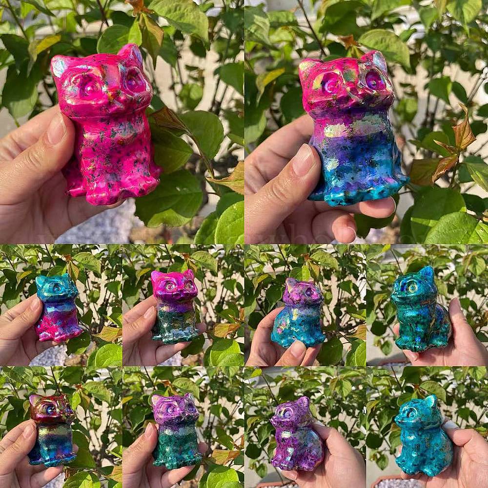 • Фуксиновый Резная статуя кошки из натурального гранита, украшение дома, Статуэтки по фен-шуй для украшения домашнего офиса, красно-фиолетовые, 80 мм