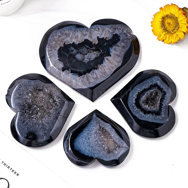 Сердце натуральный друзы черный агат (окрашенный и нагретый) витрина украшения, Камни Рейки для украшения домашнего офиса