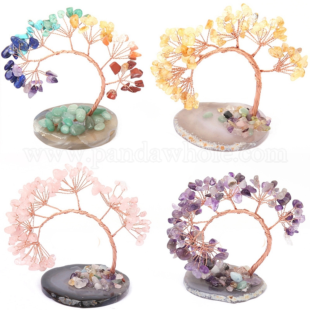 • Смешанные камни Смешанные каменные украшения для скульптуры деревьев, для домашнего офисного стола, 100x100 мм