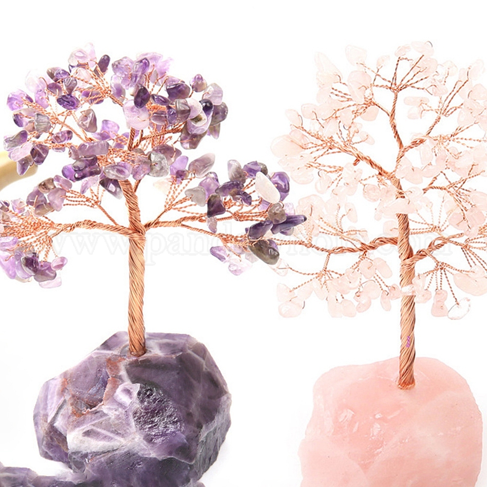 • Розовый Кварц Украшения из натурального розового кварца для скульптуры дерева, для домашнего офисного стола, 165 мм
