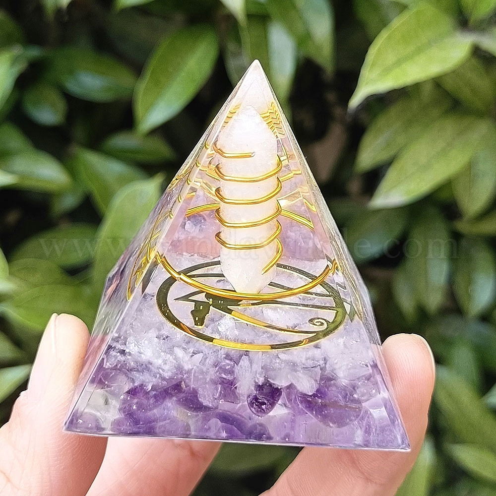 Генераторы энергии смолы оргонитовой пирамиды, Рейки, обернутая проволокой, натуральный кристалл кварца, шестиугольная призма и аметист внутри, для украшения домашнего офиса, стола