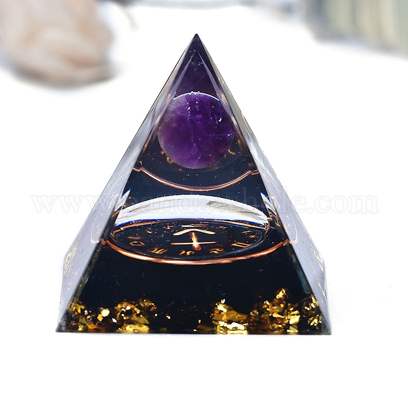 Генераторы энергии смолы оргонитовой пирамиды, Рейки круглый натуральный аметист и обсидиан внутри для украшения стола для домашнего офиса (02TNM1)