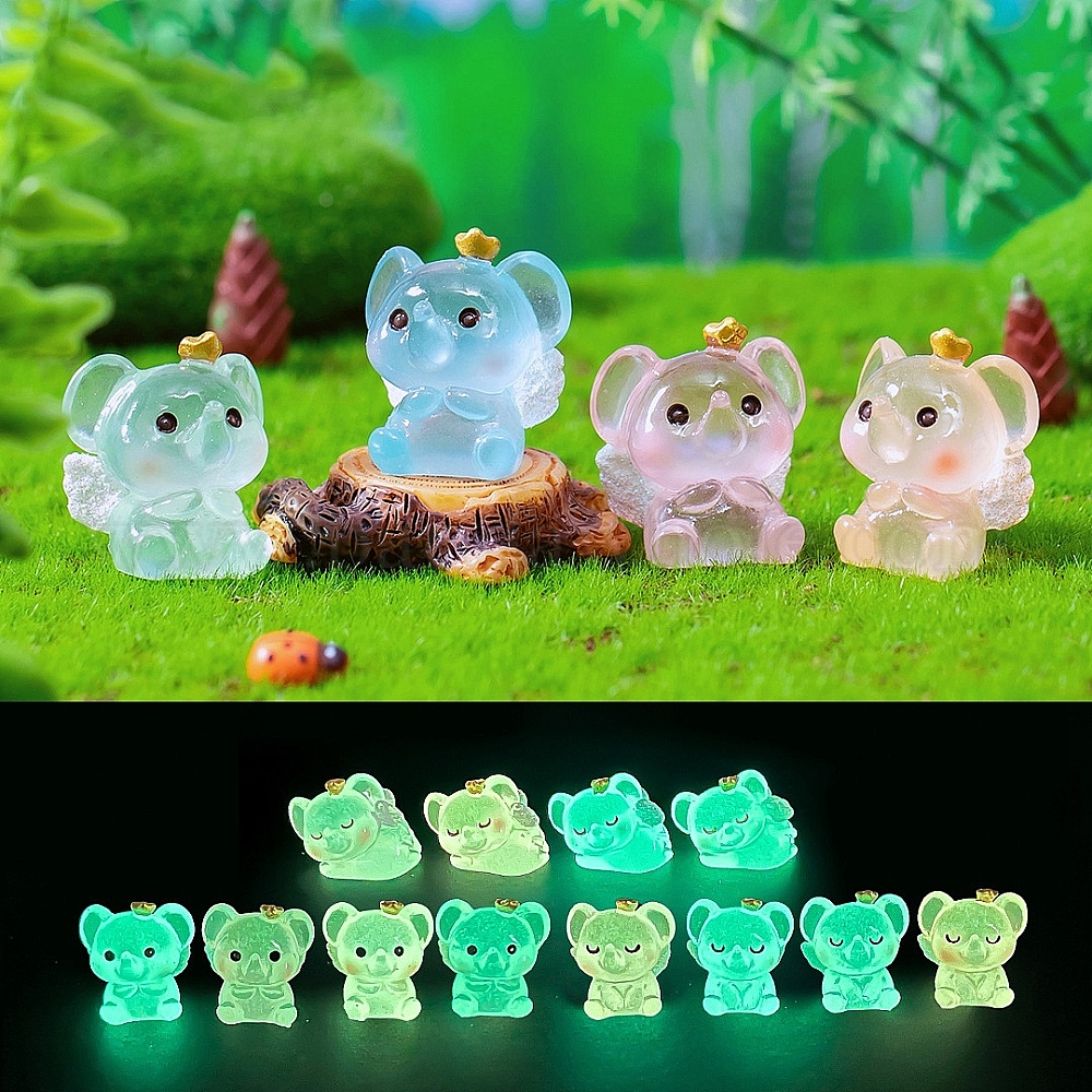 Статуэтки слонов из светящейся смолы для украшения рабочего стола автомобиля, светящиеся в темноте украшения (02TSDW)
