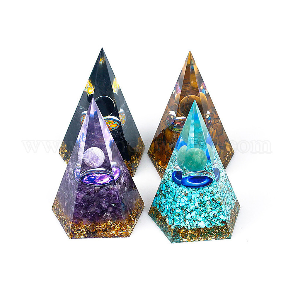 Украшение дисплея пирамиды из смолы, с кусочками драгоценных камней внутри статуй для украшения рабочего стола домашнего офиса