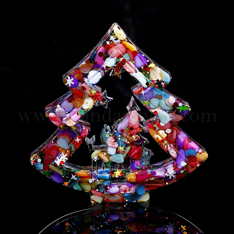 • Разноцветный Генераторы энергии из оргонитовой рождественской елки, Чипсы из натуральной скорлупы Рейки внутри для украшения стола для домашнего офиса, красочный, 107x14x108 мм