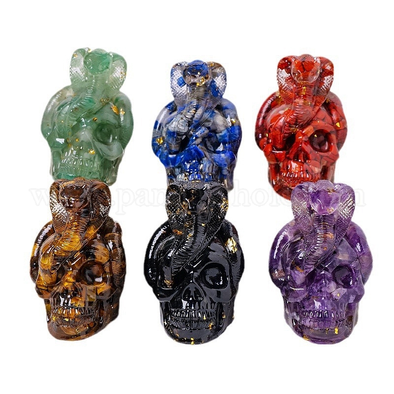 Хэллоуинская змея с черепом, фигурки из смолы, с крошками драгоценных камней внутри статуй для украшения домашнего офиса