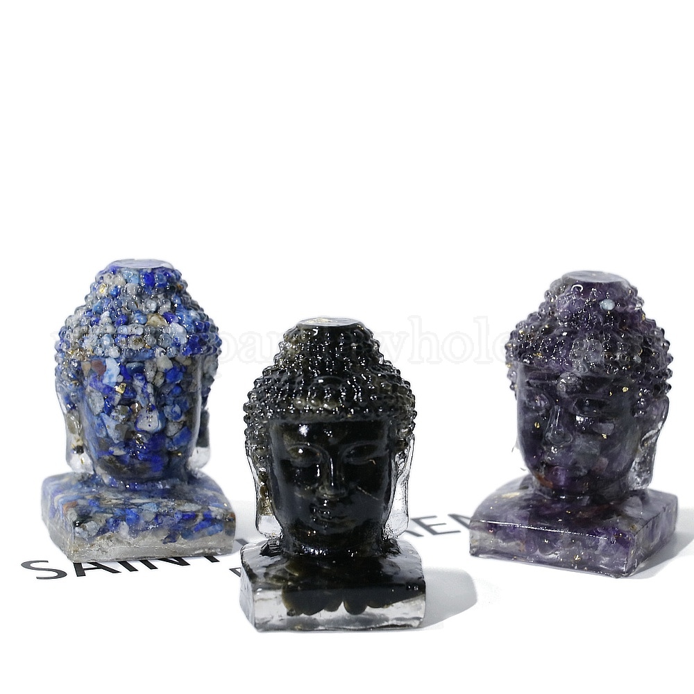 Статуэтки из смолы с головой Будды, с крошками драгоценных камней внутри статуй для украшения домашнего офиса
