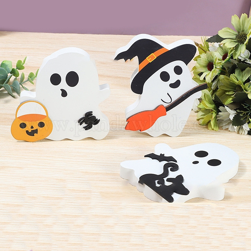 Хэллоуин украшения, Деревянные фигурки призраков для украшения домашнего рабочего стола (02W1GT)