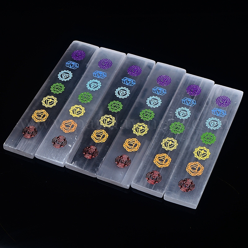 • Разноцветный Чакра натуральная гипсовая скульптура витрина украшения, для медитации рейки балансировка силы викка, прямоугольные, красочный, 140~150x28~30 мм