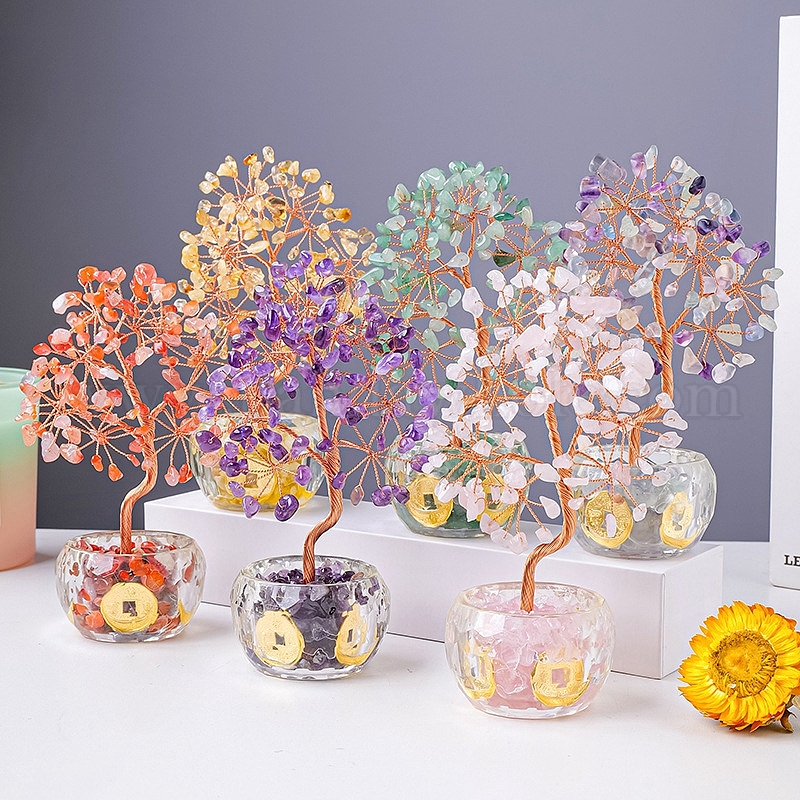 • Смешанные камни Украшения из натурального драгоценного камня дерево жизни, Медная проволока, энергетический камень фэн-шуй, подарок для женщин и мужчин, медитация, 57x140~170 мм