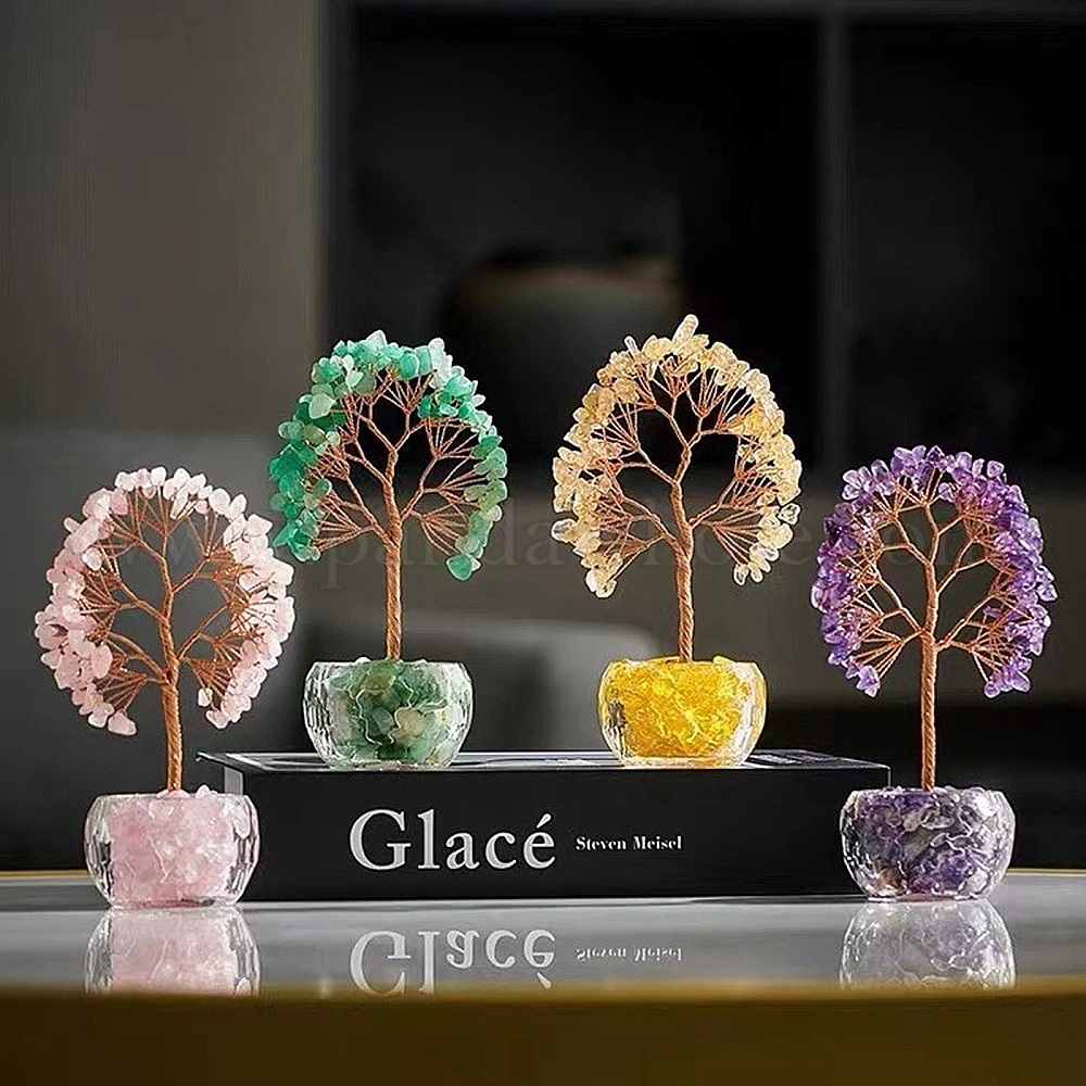 Украшения дисплея скульптуры из натурального драгоценного камня, для домашнего офисного стола, дерево (02W512)