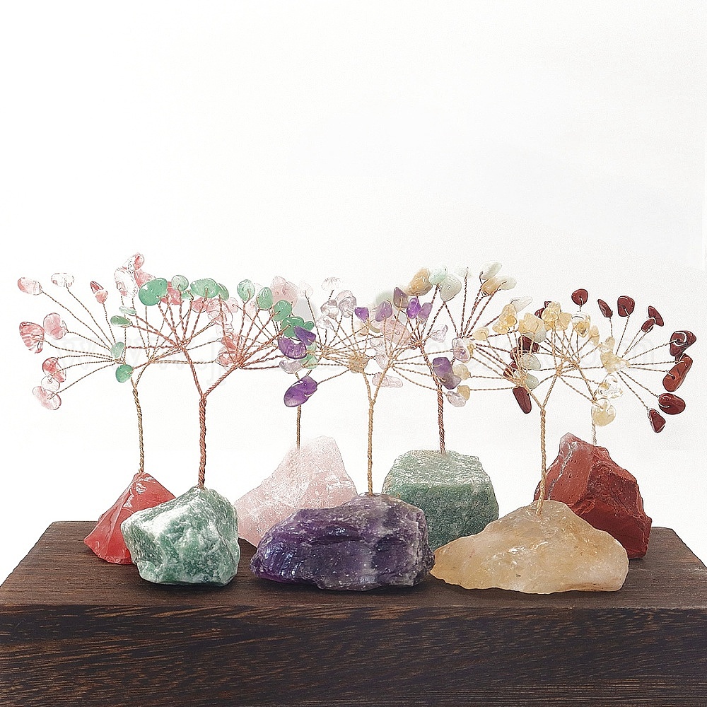 • Авантюрин Украшение дисплея скульптуры из натурального авантюрина, для домашнего офисного стола, дерево, 80~90 мм