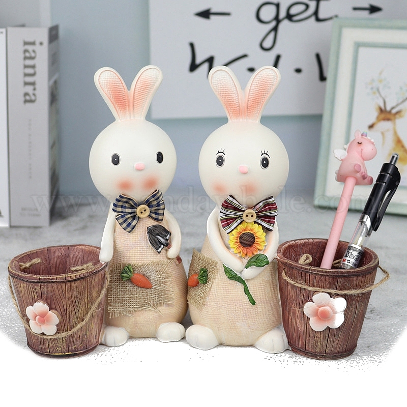 Фигурки из смолы для украшения дисплея, украшение для рабочего стола для домашнего офиса, кролик с цветком/лопатой (02W991)