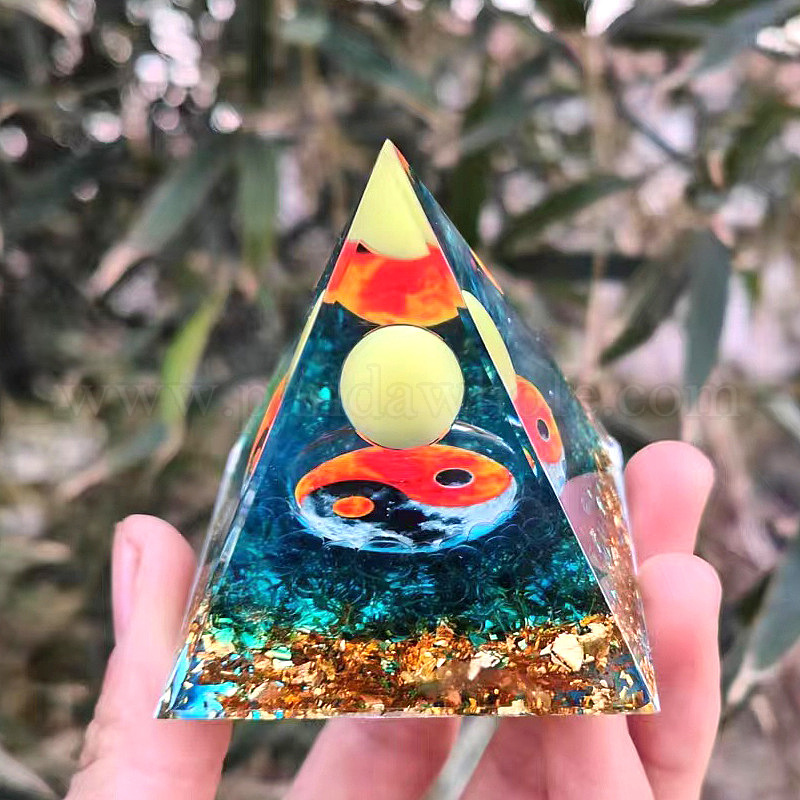 • Yin-yang Генераторы энергии смолы оргонитовой пирамиды, для украшения рабочего стола домашнего офиса, инь-ян, 50x50x50 мм