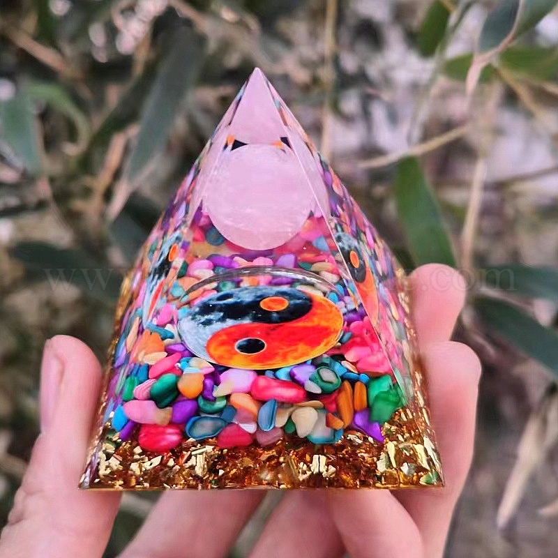• Yin-yang Генераторы энергии смолы оргонитовой пирамиды, для украшения рабочего стола домашнего офиса, инь-ян, 50x50x50 мм