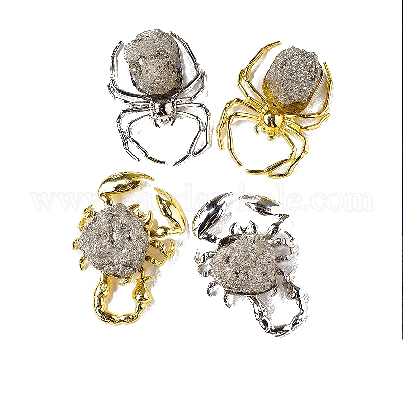 • Платина Природные украшения пирит дисплей, металлическое украшение домашнего офиса, платина, 60~65x40~45 мм