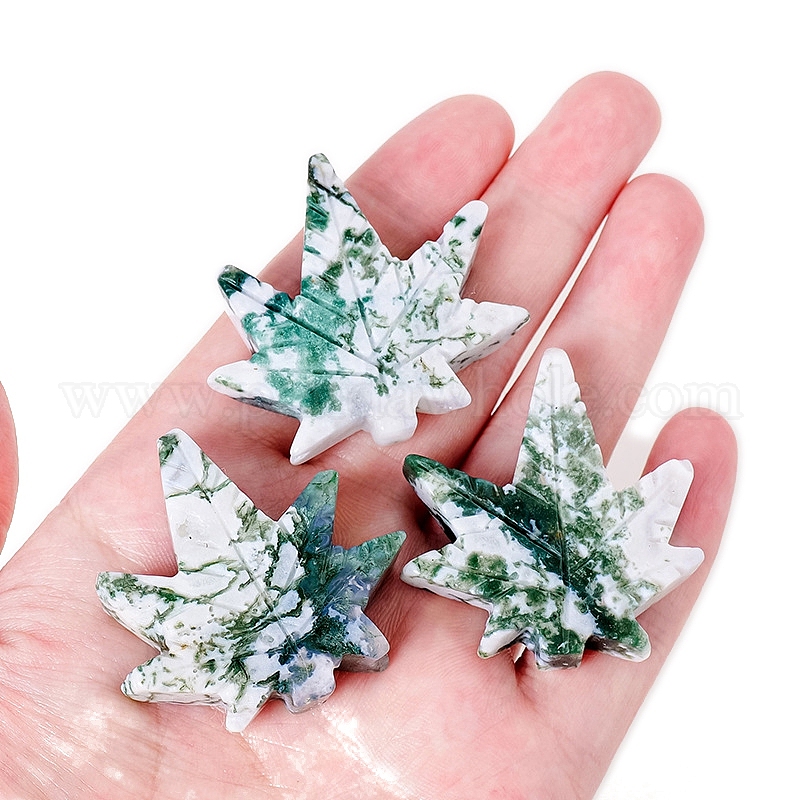 • Мосс Агат Украшение дисплея скульптуры из натурального мохового агата, для домашнего офисного стола, лист, 40x45 мм