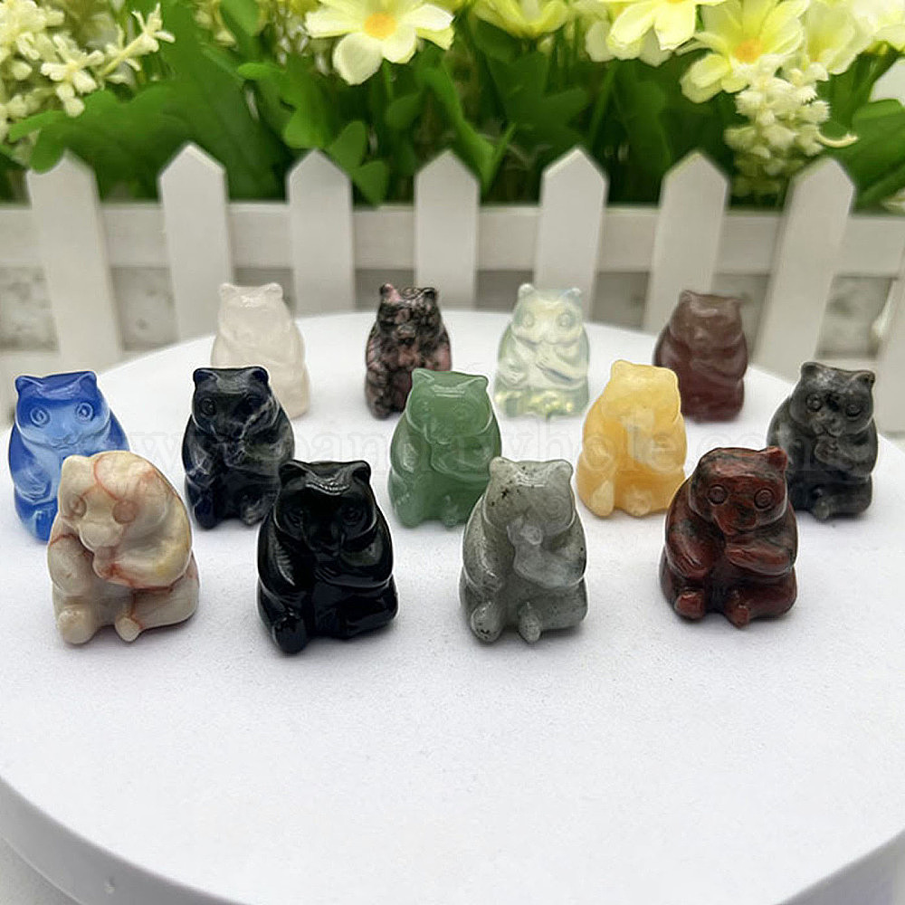 Скульптурные украшения из натуральных драгоценных камней, для украшения стола домашнего офиса, медведь