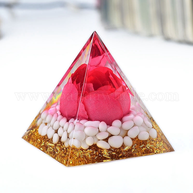 Украшение дисплея смолы пирамиды оргонита, с натуральными белыми нефритовыми крошками внутри, для домашнего офисного стола, роза