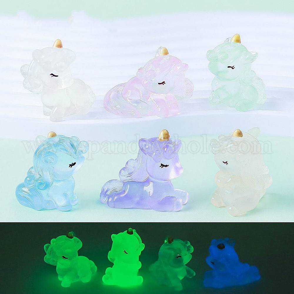 Светящиеся в темноте скульптуры из смолы витринные украшения, для украшения рабочего стола домашнего офиса, единорог (02X5TG)