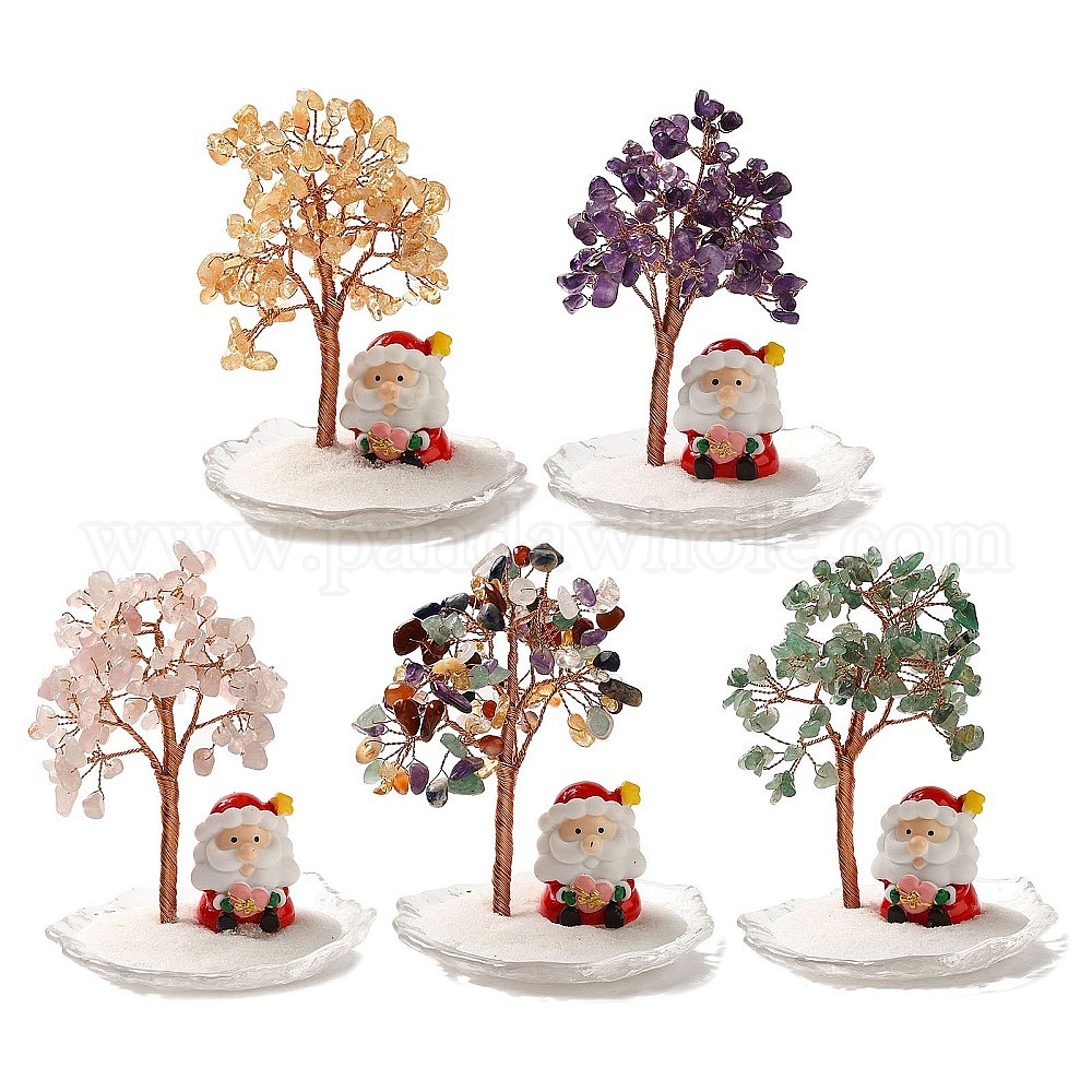 Рождественские украшения из натуральных драгоценных камней, Санта-Клаус, основание лампворк с медной проволокой, фэн-шуй, энергетический камень, подарок для домашнего офиса, рабочего стола