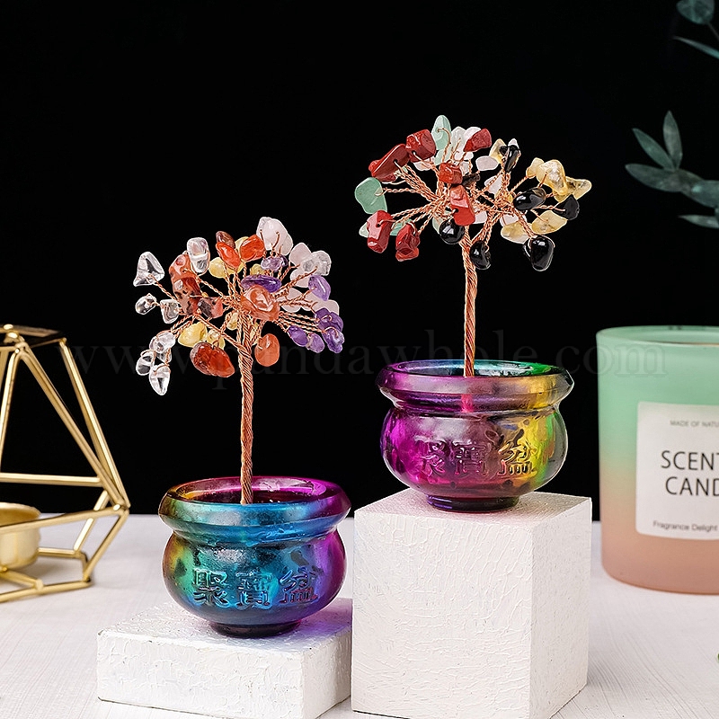 Украшения из смешанных драгоценных камней для демонстрации богатства на дереве, домашний офис фэн-шуй декор, с керамическим рогом изобилия подвал