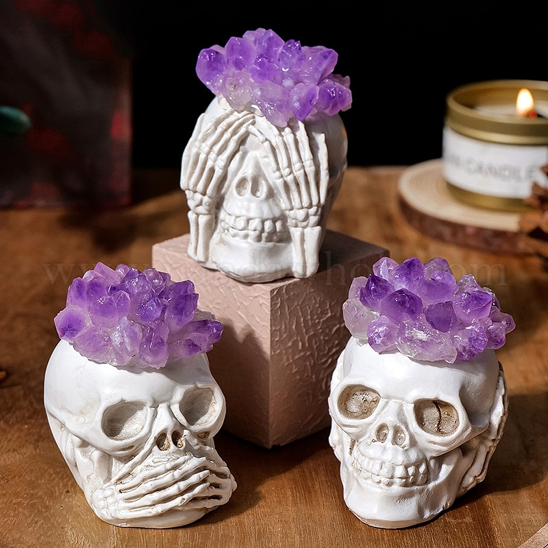 3шт. тема Хэллоуина, натуральный аметист, чипсы, увенчанные фигуркой черепа, украшение домашнего офиса