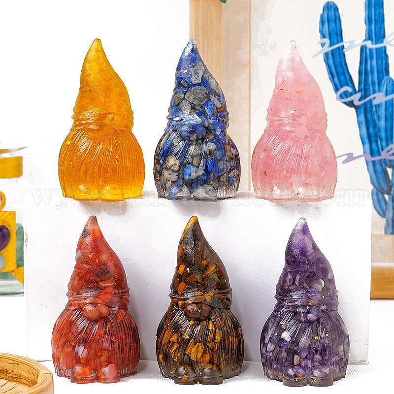 • Тигровый глаз Украшение для витрины из смоляного гнома, с натуральными чипсами тигрового глаза внутри статуй для украшения домашнего офиса, 77x48 мм