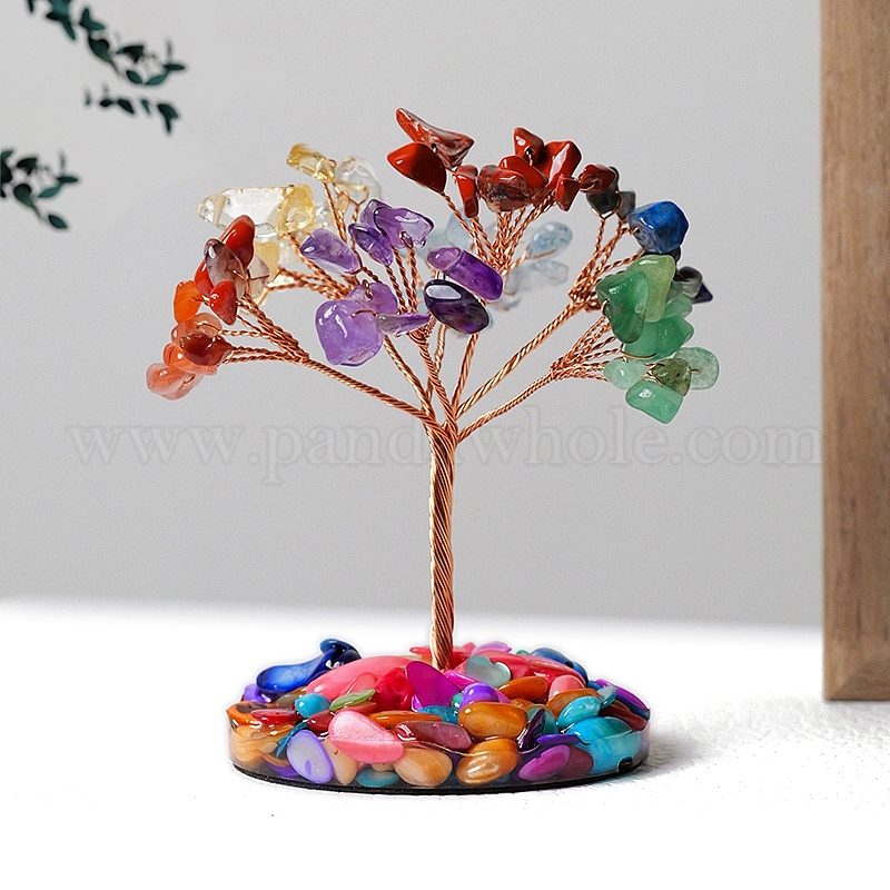 Украшения из натуральной смешанной крошки драгоценных камней «Древо жизни», основа оболочки с медной проволокой, фен-шуй энергетический камень подарок для домашнего офиса украшение рабочего стола