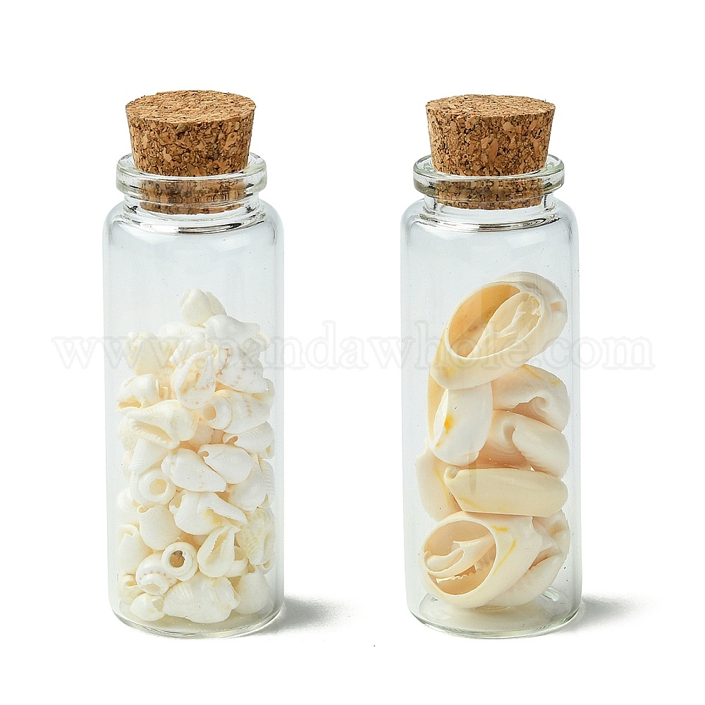 2шт. прозрачная стеклянная бутылка для желаний, балансировка драгоценных камней викка, с ракушечными бусинами и чипсами внутри