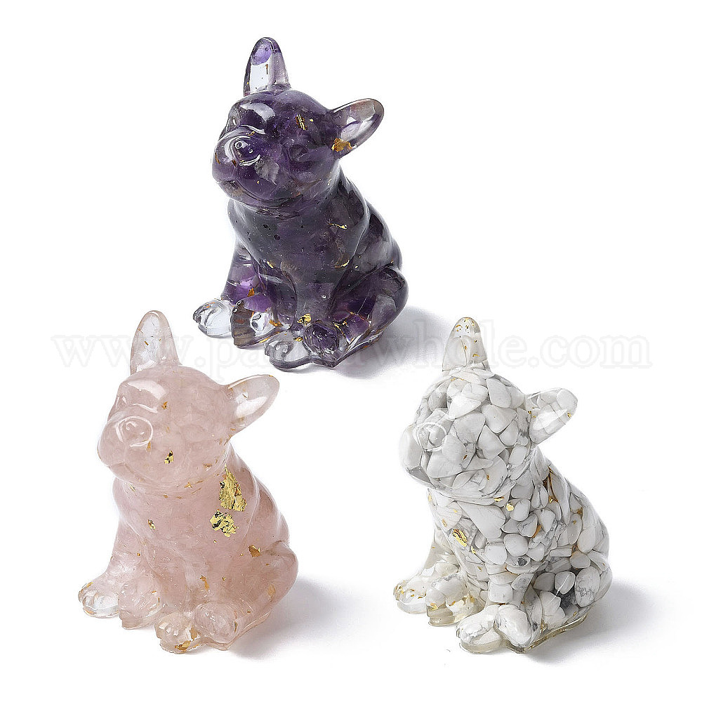 Украшение для выставки собак из смолы, с натуральными драгоценными камнями и золотой фольгой внутри статуэтки для украшения домашнего офиса