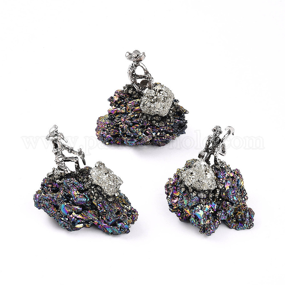 Гальваническое покрытие натуральный уголь кварц кластерная скульптура основание, со старинным серебряным сплавом шахтер, для украшения рабочего стола домашнего офиса