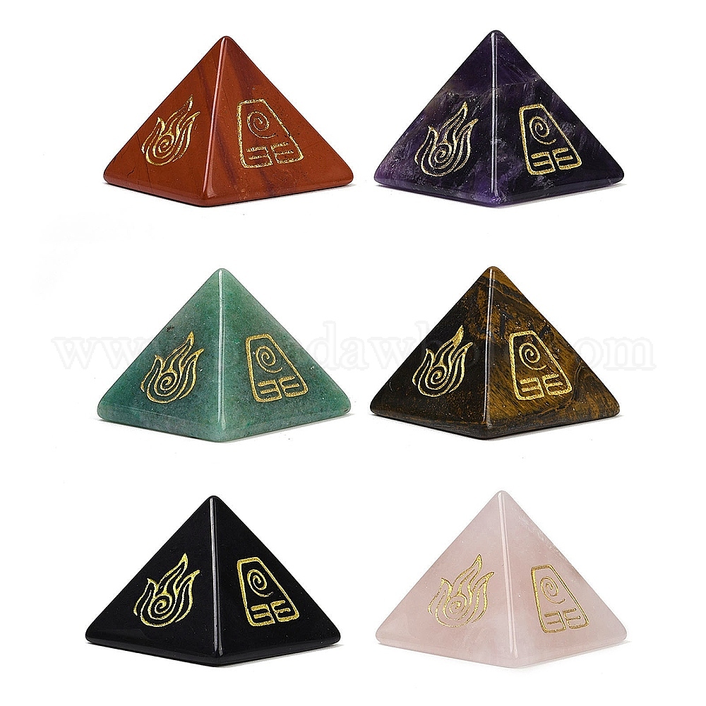 6шт. натуральный смешанный драгоценный камень оргонит пирамида дисплей украшения, с символом, фигурка для украшения дома, энергетический камень рейки для исцеления