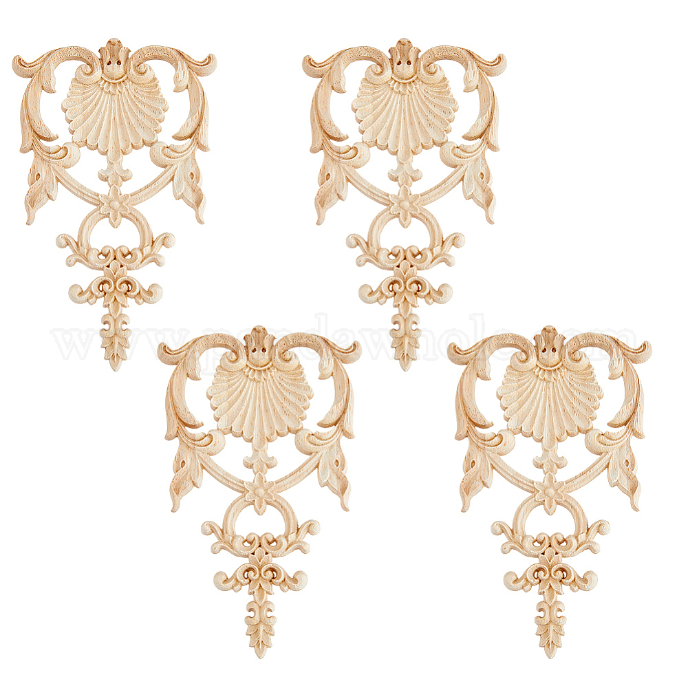4 шт. из натурального массива дерева, резная накладка, аппликация, ремесло, неокрашенная накладка мебель украшения дома