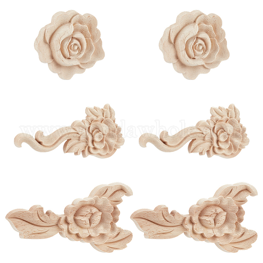 6 шт. 3 стили цветок дерево резная накладка аппликация ремесло, неокрашенная накладка мебель украшения дома