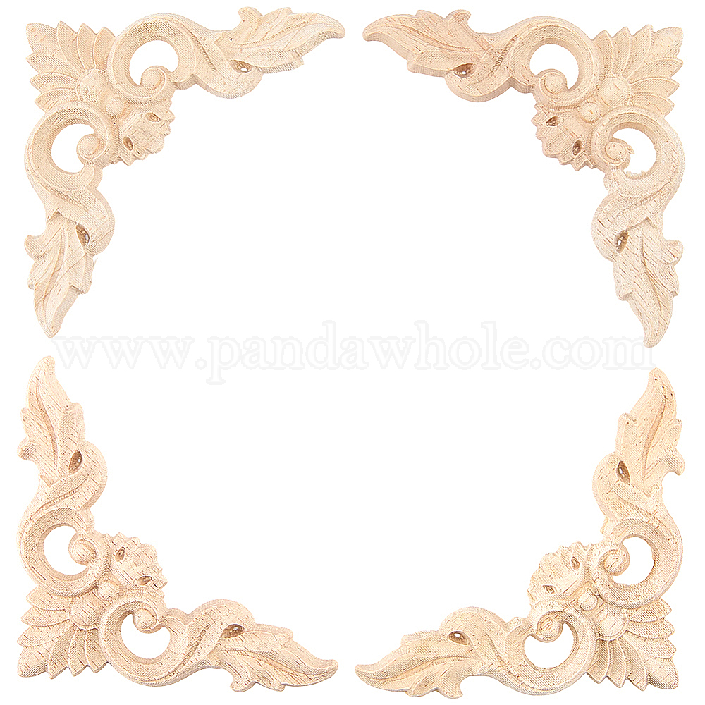Резная накладка из каучукового дерева, центральная цветочная длинная аппликация, дверной шкаф-кровать неокрашенный декор европейский стиль