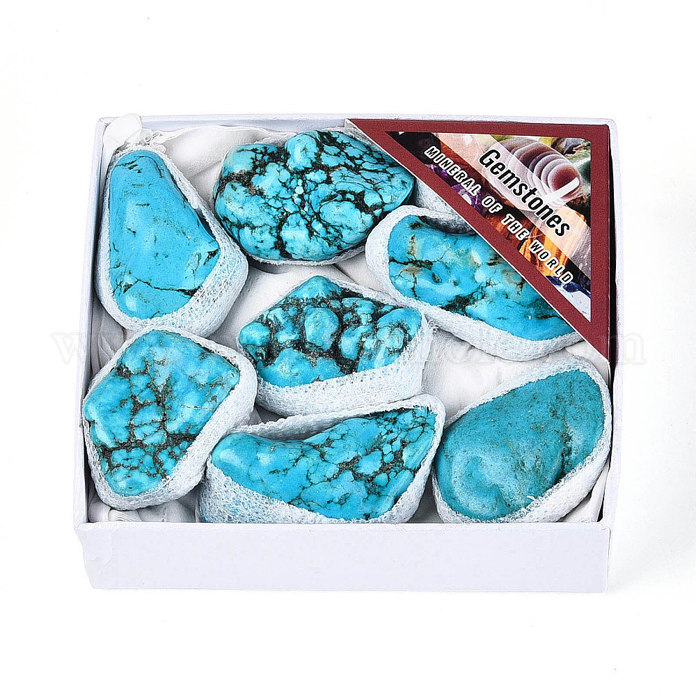 8 шт. синтетическая бирюзовая геода образец минерала рога изобилия, кластер необработанных кристаллов, Целебный кристалл в подарок для домашнего декора, с бумажной коробкой (039K8Q)